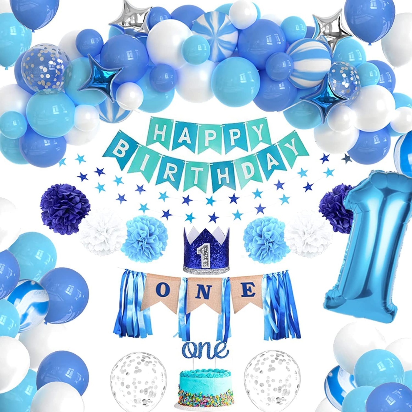 1st Birthday Blue Boys. Σετ διακόσμησης παιδικού πάρτυ.