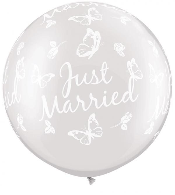 30″ Prl White Just Married Butterflies -A-Round /2 τεμWedding-Γάμος