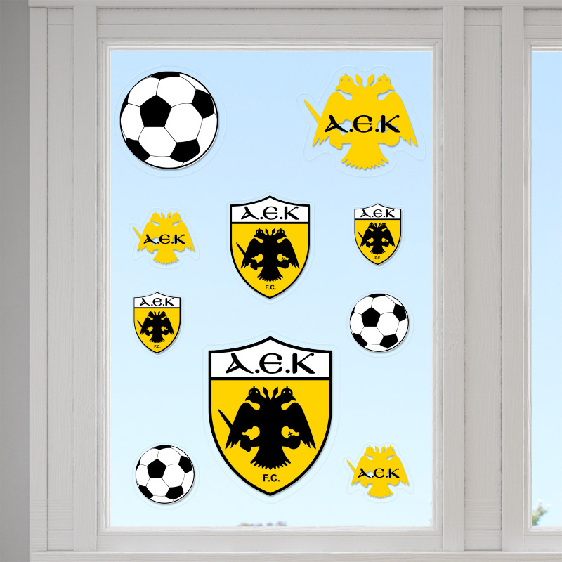Εξαιρετικά διάφανα αυτοκόλλητα τζαμιού ΑΕΚ, κατασκευασμένα από υλικό υψηλής ποιότητας. Ανανεώστε την ατμόσφαιρα σας με τα αυτοκόλλητα τζαμιού ΑΕΚ! Δώστε ζωντάνια στον χώρο σας με την αγαπημένη σας θεματολογία