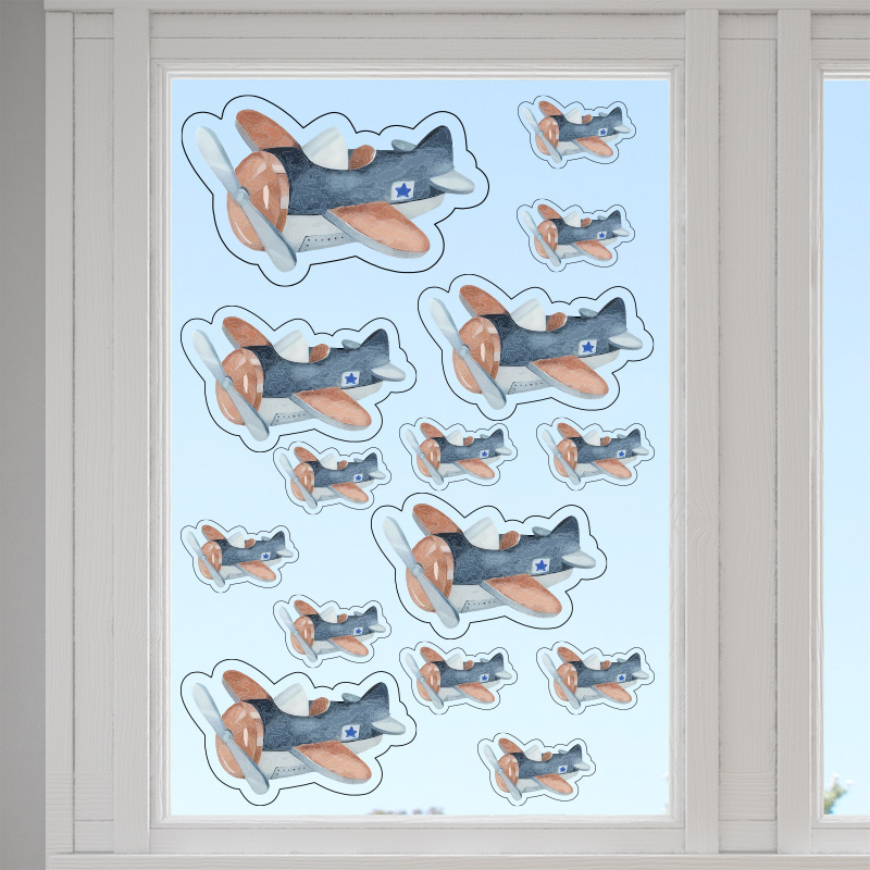 Εξαιρετικά διάφανα αυτοκόλλητα τζαμιού Αεροπλάνο Vintage, κατασκευασμένα από υλικό υψηλής ποιότητας. Ανανεώστε την ατμόσφαιρα σας με τα αυτοκόλλητα τζαμιού Αεροπλάνο Vintage! Δώστε ζωντάνια στον χώρο σας με την αγαπημένη σας θεματολογία