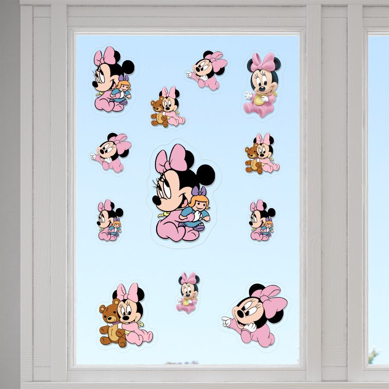 Εξαιρετικά διάφανα αυτοκόλλητα τζαμιού Baby Minnie, κατασκευασμένα από υλικό υψηλής ποιότητας. Ανανεώστε την ατμόσφαιρα σας με τα αυτοκόλλητα τζαμιού Baby Minnie! Δώστε ζωντάνια στον χώρο σας με την αγαπημένη σας θεματολογία