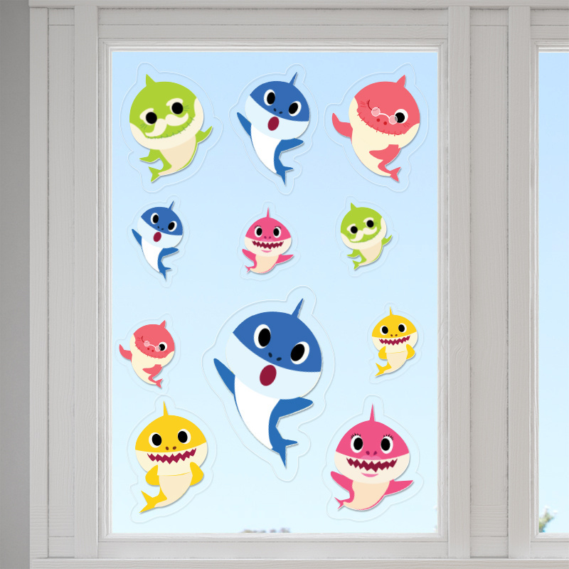 Εξαιρετικά διάφανα αυτοκόλλητα τζαμιού Baby Shark, κατασκευασμένα από υλικό υψηλής ποιότητας. Ανανεώστε την ατμόσφαιρα σας με τα αυτοκόλλητα τζαμιού Baby Shark! Δώστε ζωντάνια στον χώρο σας με την αγαπημένη σας θεματολογία