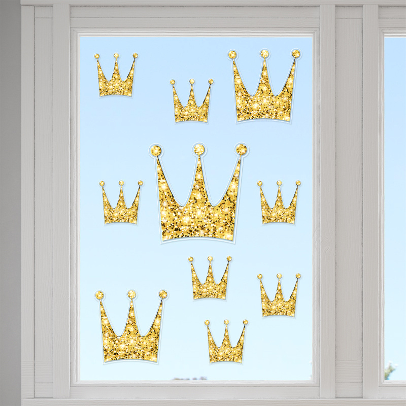 Εξαιρετικά διάφανα αυτοκόλλητα τζαμιού Κορώνα, κατασκευασμένα από υλικό υψηλής ποιότητας. Ανανεώστε την ατμόσφαιρα σας με τα αυτοκόλλητα τζαμιού Κορώνα! Δώστε ζωντάνια στον χώρο σας με την αγαπημένη σας θεματολογία