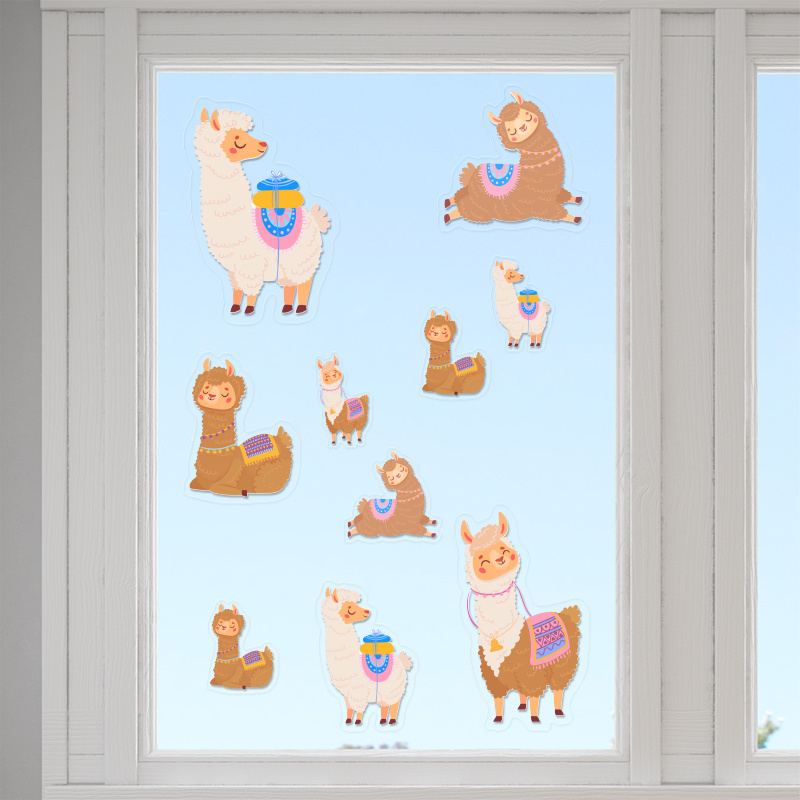 Εξαιρετικά διάφανα αυτοκόλλητα τζαμιού Λάμα, κατασκευασμένα από υλικό υψηλής ποιότητας. Ανανεώστε την ατμόσφαιρα σας με τα αυτοκόλλητα τζαμιού Λάμα! Δώστε ζωντάνια στον χώρο σας με την αγαπημένη σας θεματολογία