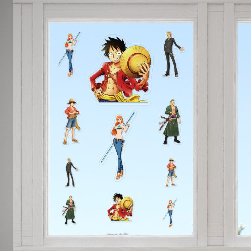 Εξαιρετικά διάφανα αυτοκόλλητα τζαμιού One Piece, κατασκευασμένα από υλικό υψηλής ποιότητας. Ανανεώστε την ατμόσφαιρα σας με τα αυτοκόλλητα τζαμιού One Piece! Δώστε ζωντάνια στον χώρο σας με την αγαπημένη σας θεματολογία