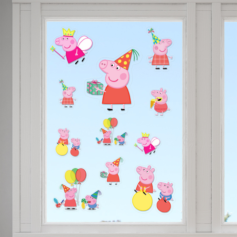 Εξαιρετικά διάφανα αυτοκόλλητα τζαμιού Peppa, κατασκευασμένα από υλικό υψηλής ποιότητας. Ανανεώστε την ατμόσφαιρα σας με τα αυτοκόλλητα τζαμιού Peppa! Δώστε ζωντάνια στον χώρο σας με την αγαπημένη σας θεματολογία