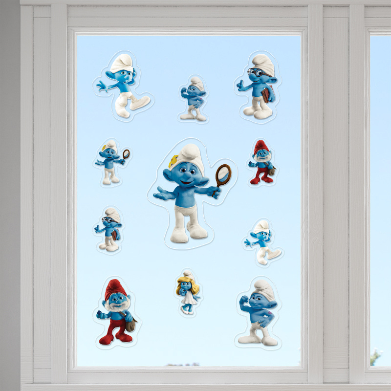 Εξαιρετικά διάφανα αυτοκόλλητα τζαμιού Στρουμφάκια, κατασκευασμένα από υλικό υψηλής ποιότητας. Ανανεώστε την ατμόσφαιρα σας με τα αυτοκόλλητα τζαμιού Στρουμφάκια! Δώστε ζωντάνια στον χώρο σας με την αγαπημένη σας θεματολογία