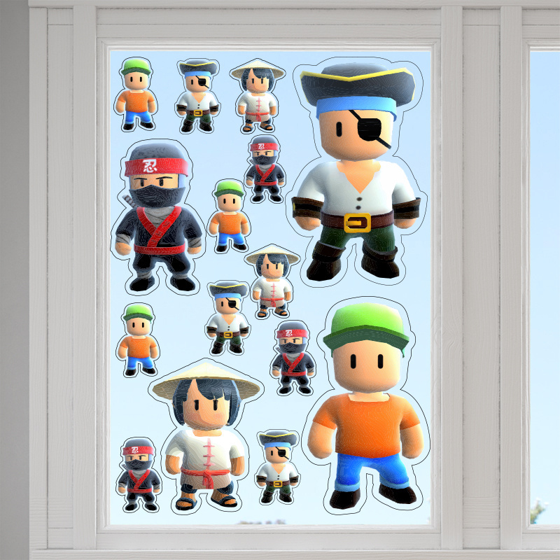 Εξαιρετικά διάφανα αυτοκόλλητα τζαμιού Stumble Guys, κατασκευασμένα από υλικό υψηλής ποιότητας. Ανανεώστε την ατμόσφαιρα σας με τα αυτοκόλλητα τζαμιού Stumble Guys! Δώστε ζωντάνια στον χώρο σας με την αγαπημένη σας θεματολογία
