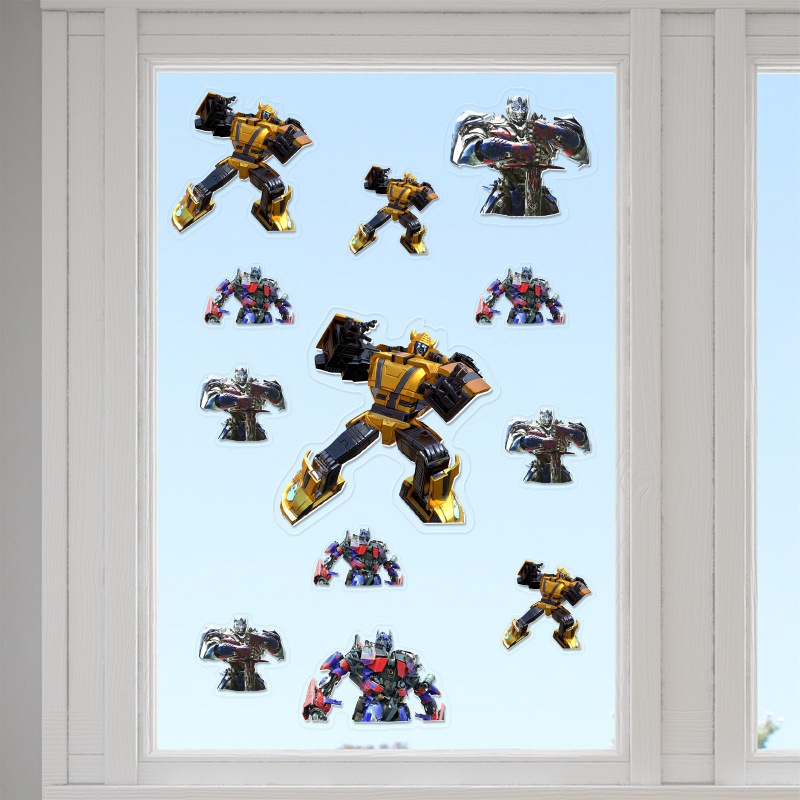 Εξαιρετικά διάφανα αυτοκόλλητα τζαμιού Transformers, κατασκευασμένα από υλικό υψηλής ποιότητας. Ανανεώστε την ατμόσφαιρα σας με τα αυτοκόλλητα τζαμιού Transformers! Δώστε ζωντάνια στον χώρο σας με την αγαπημένη σας θεματολογία