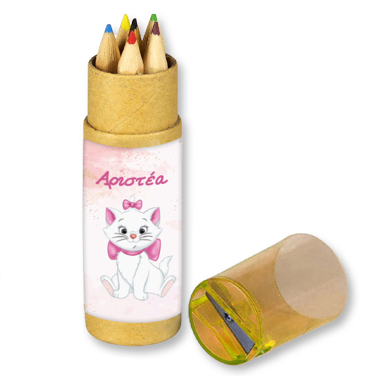 Σετ Ξυλομπογιές 6τμχ με ξύστρα Αριστόγατες Μαρί με όνομα ένα υπέροχο δωράκι για τους μικρούς μας φίλους. Για την Βάπτιση και το Πάρτι σας.