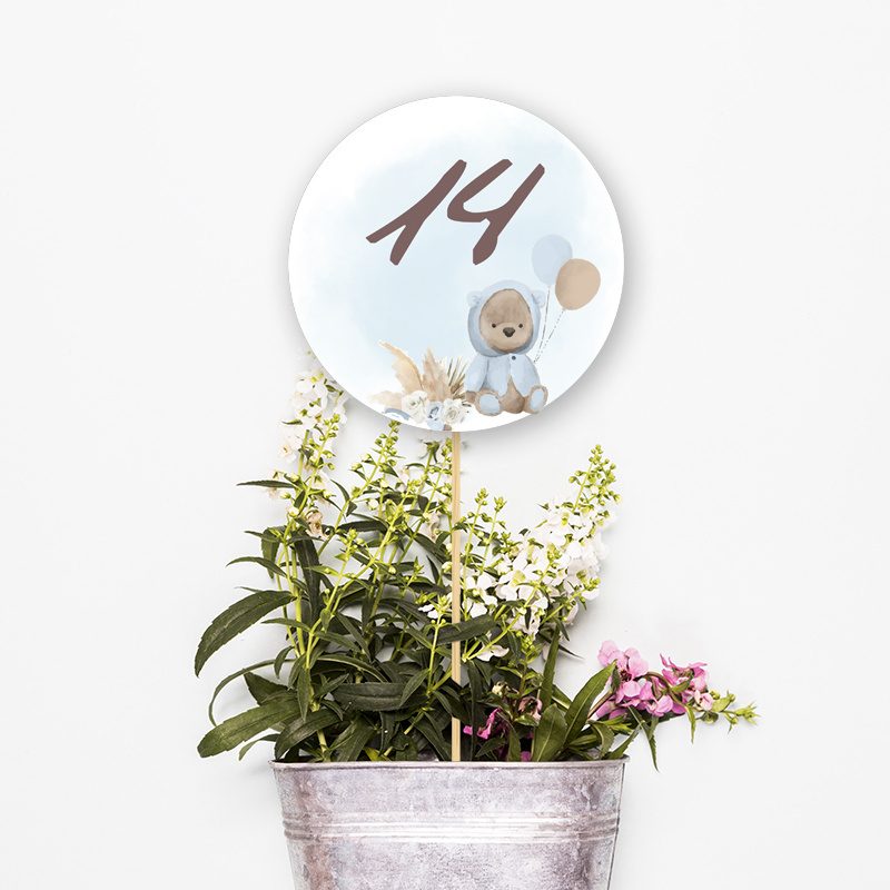 Θα ήταν χαρά μας να σας βοηθήσουμε να προσωποποιήσετε τα τραπέζια σας με ένα ξεχωριστό θέμα Αρκουδάκι για Αγόρι. Μπορούμε να δημιουργήσουμε εντυπωσιακές κάρτες αρίθμησης για κάθε τραπέζι που θα ενθουσιάσουν τους καλεσμένους σας.