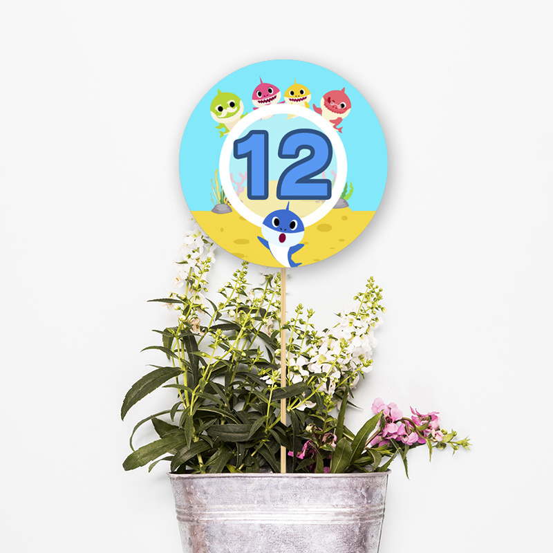 Θα ήταν χαρά μας να σας βοηθήσουμε να προσωποποιήσετε τα τραπέζια σας με ένα ξεχωριστό θέμα Baby Shark. Μπορούμε να δημιουργήσουμε εντυπωσιακές κάρτες αρίθμησης για κάθε τραπέζι που θα ενθουσιάσουν τους καλεσμένους σας.