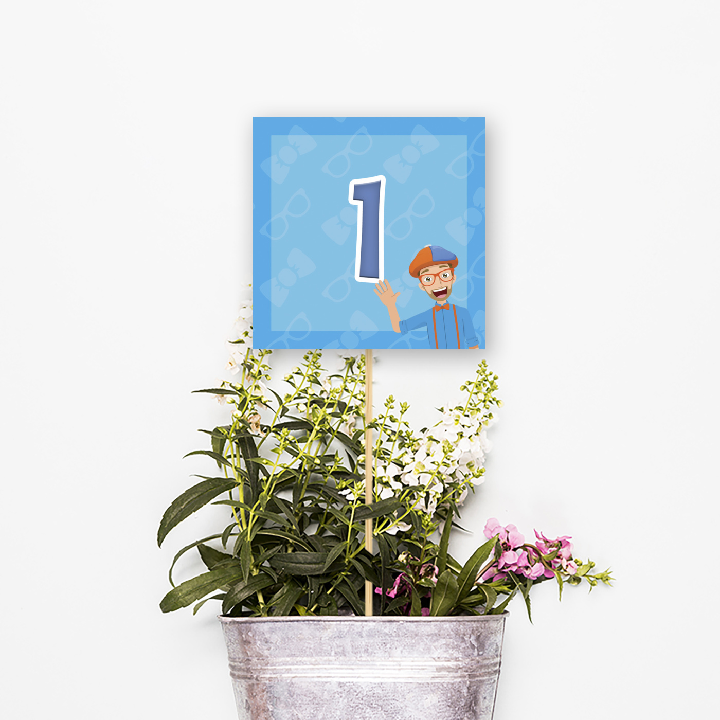 Βασισμένο στο θέμα Blippi, μπορούμε να δημιουργήσουμε κάρτες αρίθμησης με σχέδια από τον αγαπημένο μικρό επιχειρηματία.