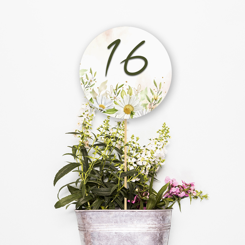 Θα ήταν χαρά μας να σας βοηθήσουμε να προσωποποιήσετε τα τραπέζια σας με ένα ξεχωριστό θέμα Μαργαρίτα. Μπορούμε να δημιουργήσουμε εντυπωσιακές κάρτες αρίθμησης για κάθε τραπέζι που θα ενθουσιάσουν τους καλεσμένους σας.
