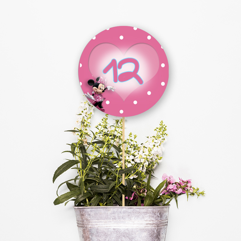 Θα ήταν χαρά μας να σας βοηθήσουμε να προσωποποιήσετε τα τραπέζια σας με ένα ξεχωριστό θέμα Minnie. Μπορούμε να δημιουργήσουμε εντυπωσιακές κάρτες αρίθμησης για κάθε τραπέζι που θα ενθουσιάσουν τους καλεσμένους σας.