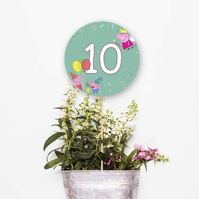 Θα ήταν χαρά μας να σας βοηθήσουμε να προσωποποιήσετε τα τραπέζια σας με ένα ξεχωριστό θέμα Peppa Pig. Μπορούμε να δημιουργήσουμε εντυπωσιακές κάρτες αρίθμησης για κάθε τραπέζι που θα ενθουσιάσουν τους καλεσμένους σας.