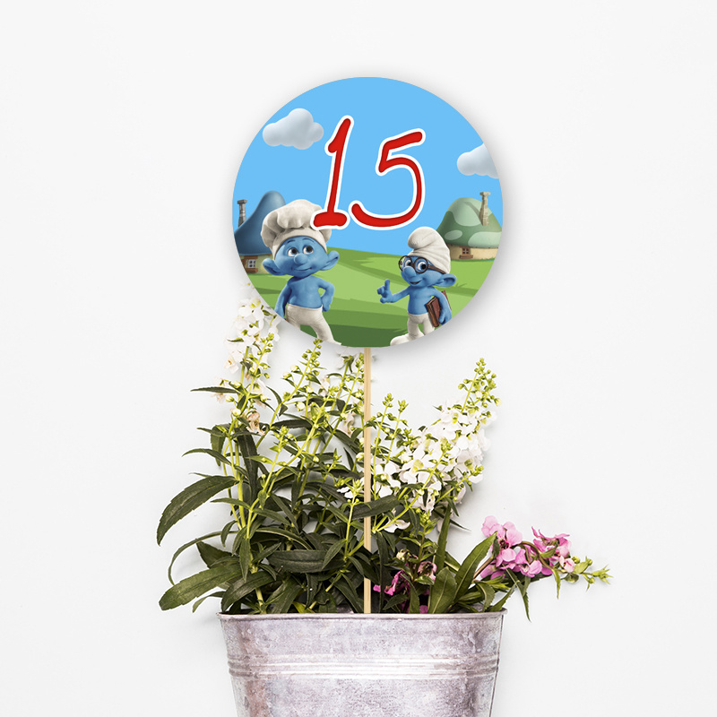 Θα ήταν χαρά μας να σας βοηθήσουμε να προσωποποιήσετε τα τραπέζια σας με ένα ξεχωριστό θέμα Στρουμφάκια. Μπορούμε να δημιουργήσουμε εντυπωσιακές κάρτες αρίθμησης για κάθε τραπέζι που θα ενθουσιάσουν τους καλεσμένους σας.