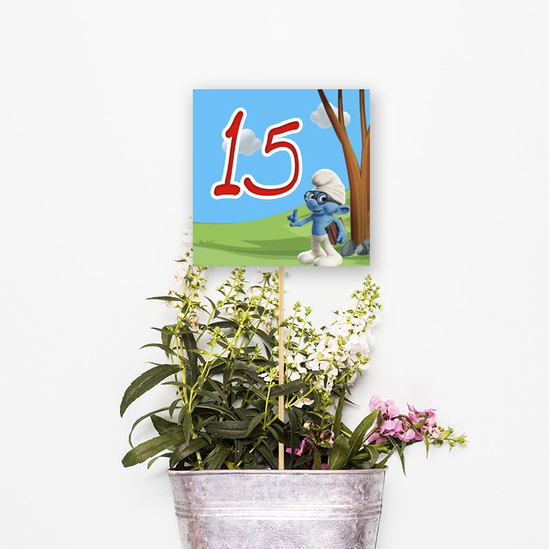 Βασισμένο στο θέμα Στρουμφάκια, μπορούμε να δημιουργήσουμε κάρτες αρίθμησης με σχέδια από τους αγαπημένους χαρακτήρες.