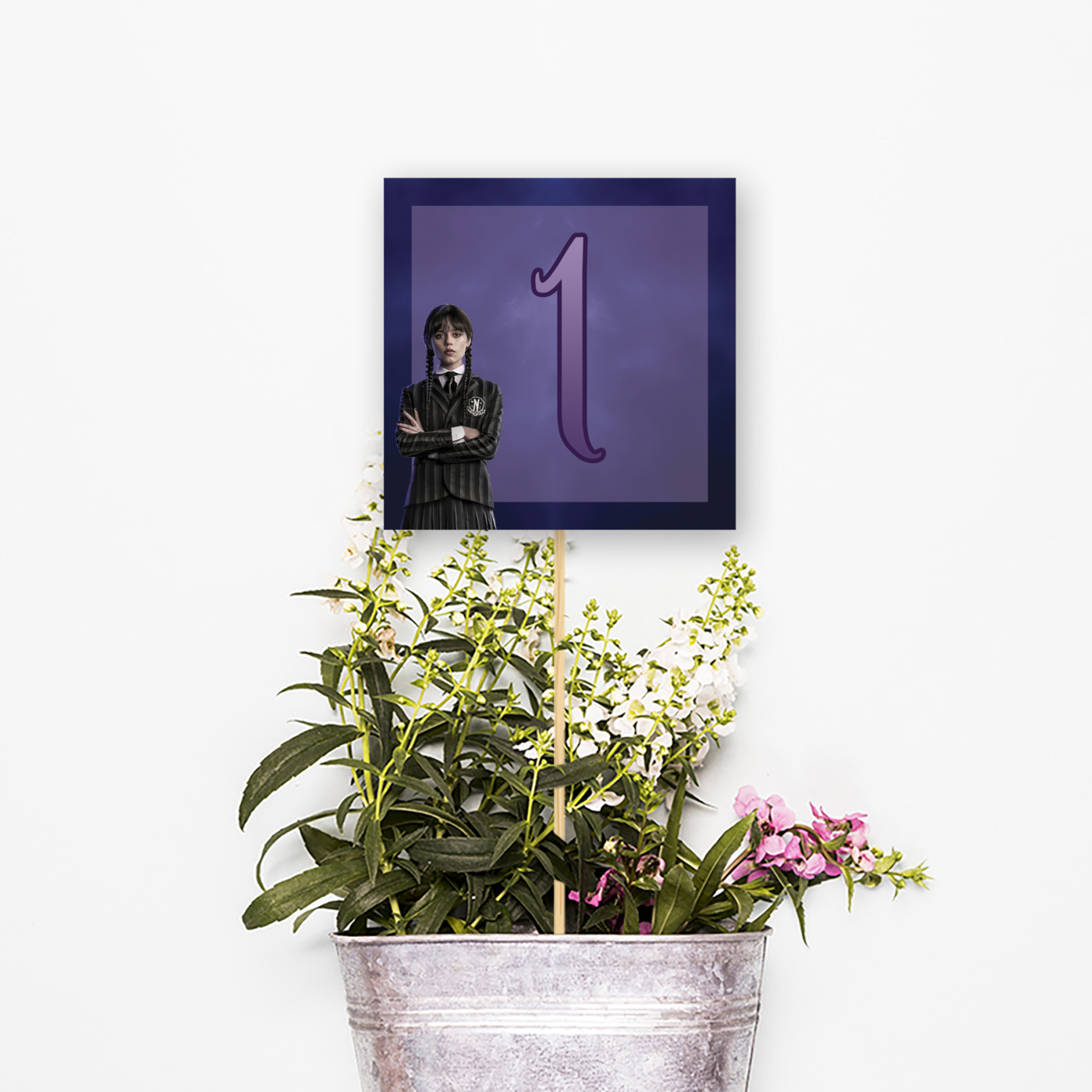 Βασισμένο στο θέμα Wednesday, μπορούμε να δημιουργήσουμε κάρτες αρίθμησης με σχέδια από την αγαπημένη ηρωίδα.