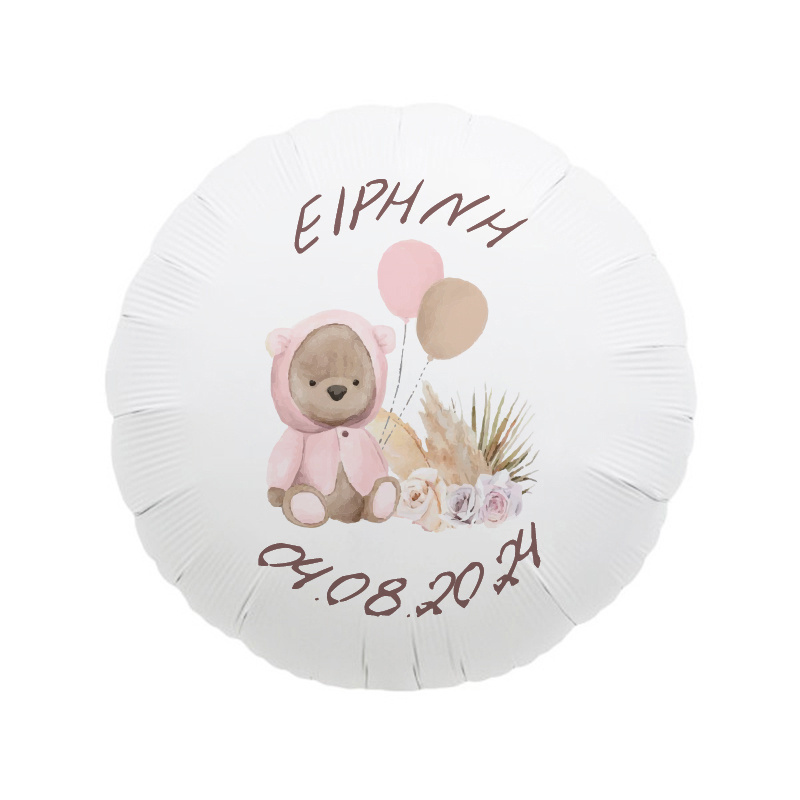 Μπαλόνι Foil Βάπτισης με όνομα Αρκουδάκι για Κορίτσι, για έναν υπέροχο στολισμό.