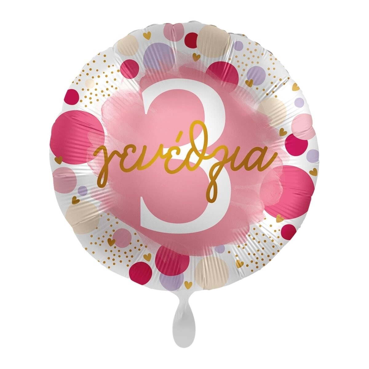 Μπαλόνι Φοιλ 17″ Χαρούμενα “3” Γενέθλια Πουά Ροζ και Χρυσό / 43 εκ