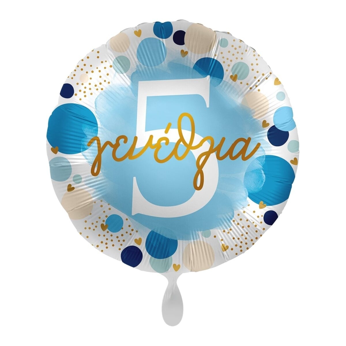 Μπαλόνι Φοιλ 17″ Χαρούμενα “5” Γενέθλια Μπλε και Χρυσό / 43 εκ
