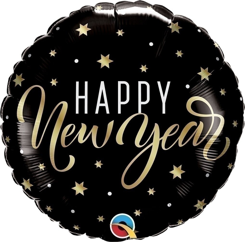 Μπαλόνι Φοιλ 18″ Happy New Year Μαύρο με Χρύσα Αστερία / 46 εκ