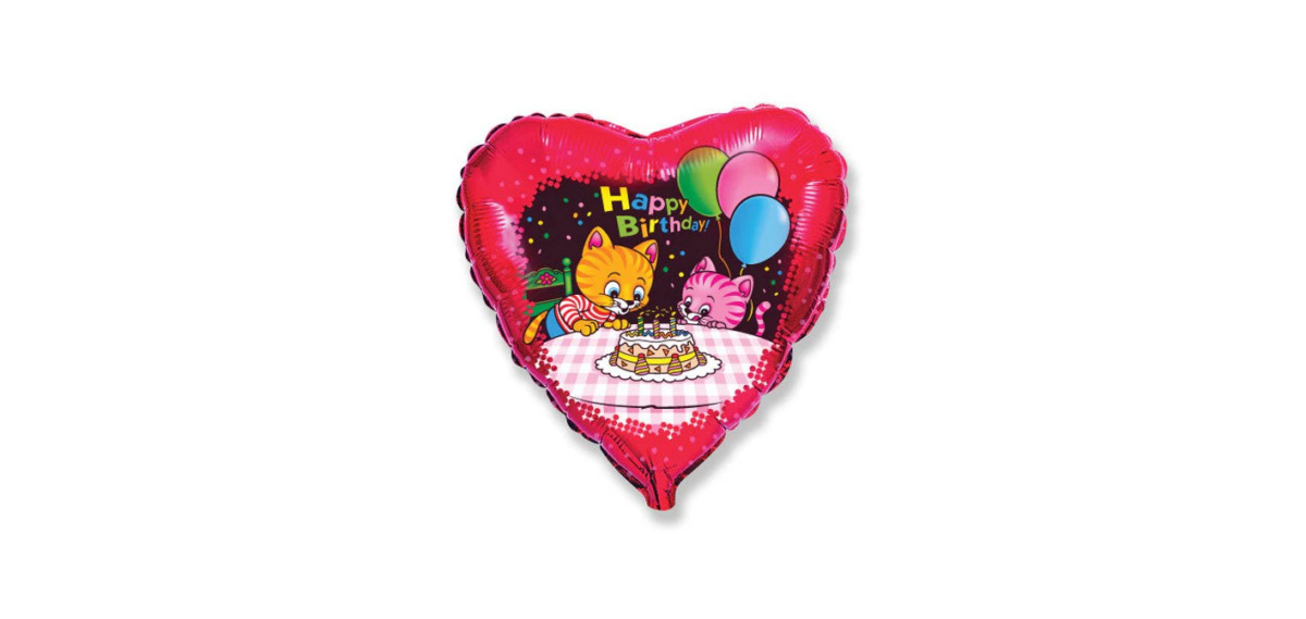 Μπαλόνι Φοιλ 18″ Καρδιά Happy Birthday με Γατάκια / 46 εκ ασυσκεύαστο