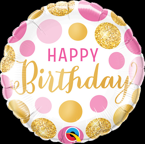 Μπαλόνι Φοιλ 9″ Birthday Pink & Gold Dots 23 εκγια καλαμάκι Φουσκωμένα μόνο παραλαβή από την έδρα μας