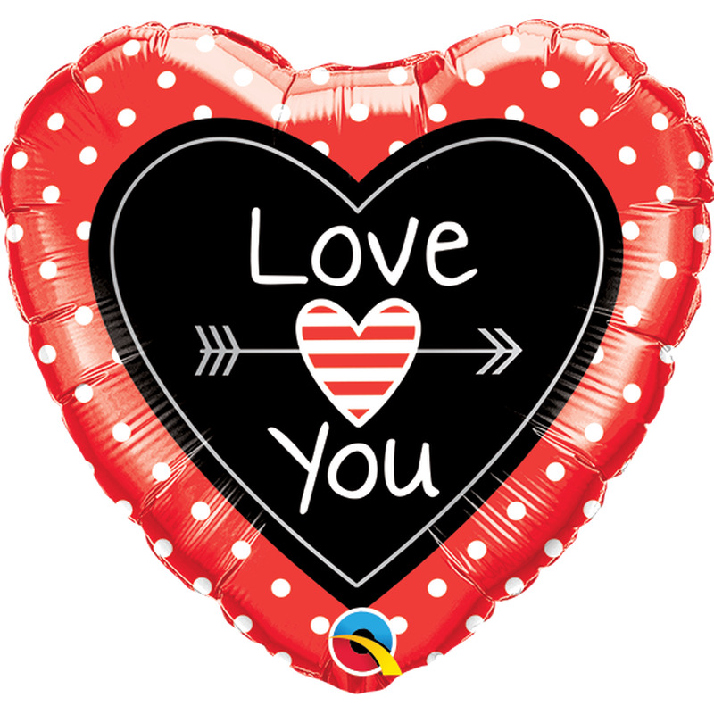 Μπαλόνι Φοιλ 9″ Love You Dots & Arrows / 23 εκγια καλαμάκι. Φουσκωμένα μόνο με παραλαβή από την έδρα μας.