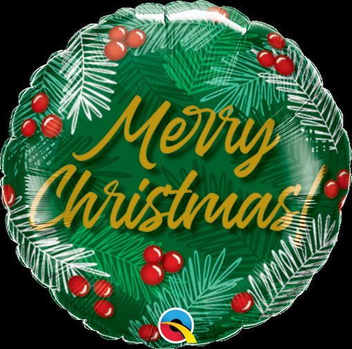 Μπαλόνι Φοιλ 9″ Merry Christmas Green & Berries 23 εκ