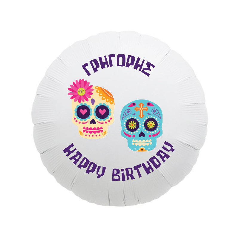 Μπαλόνι Φόιλ Halloween Νεκροκεφαλές με όνομα στρογγυλό / 43cm