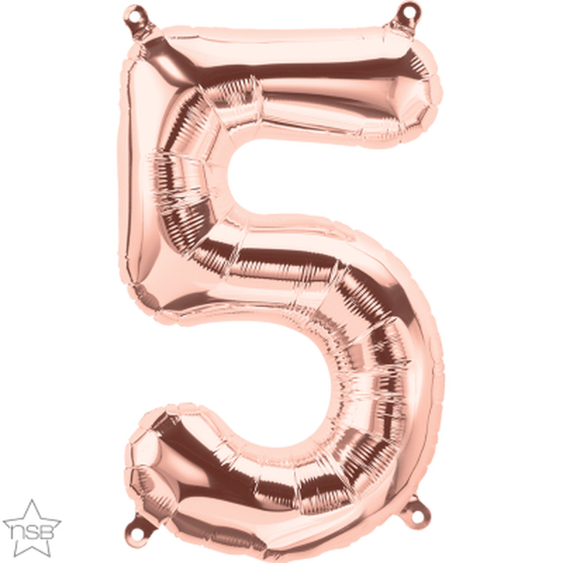 Μπαλόνι Φοιλ Μινι Νούμερο “5” Ροζ Χρυσό 16″/ 41εκ. με βαλβίδα.