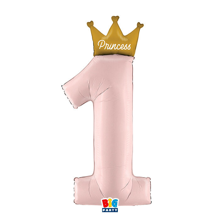 Μπαλόνι Φοιλ Νούμερο “1” Ροζ με Χρυσή Κορώνα Princess / 117 εκ