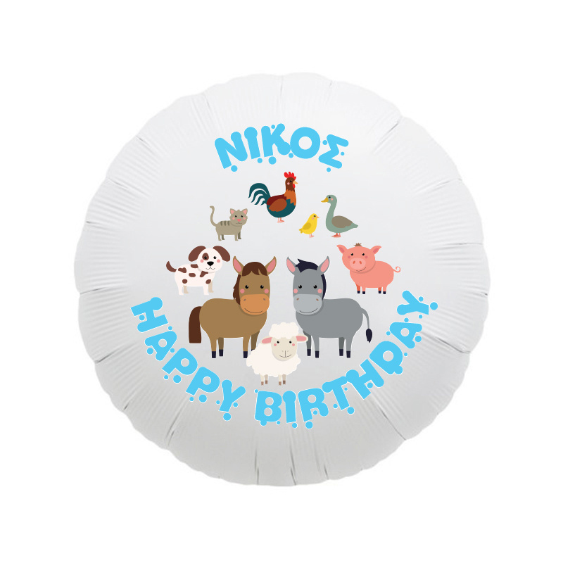 Μπαλόνι Φόιλ Ζωάκια Φάρμας με όνομα κύκλος / 43cm