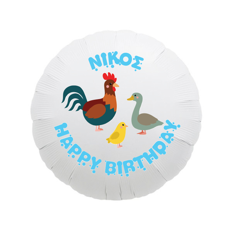 Μπαλόνι Φόιλ Ζωάκια Φάρμας με όνομα στρογγυλό / 43cm
