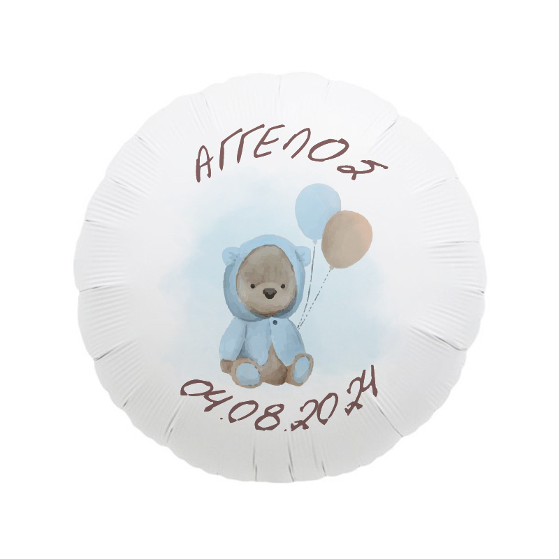 Μπαλόνι Foil Βάπτισης με όνομα Αρκουδάκι για Αγόρι, για έναν υπέροχο στολισμό.