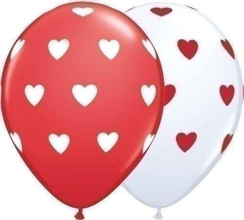 Μπαλόνια 11 Q Big Hearts Λευκά & Κόκκινα /50 τεμ