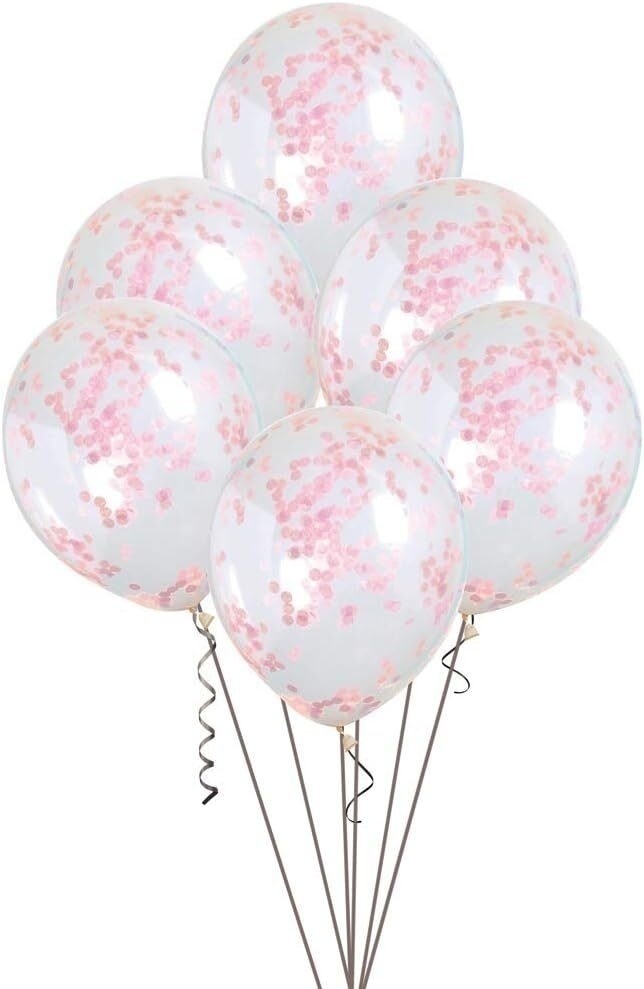 Μπαλόνια Διάφανα 12″ με Ροζ Κομφετί / 6 τεμ