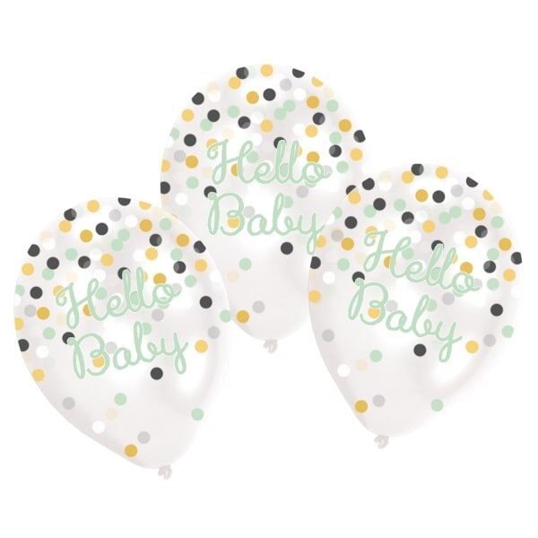 Μπαλόνια Λατέξ 11 Διάφανα με Κομφετί Hello Baby / 6 τεμ