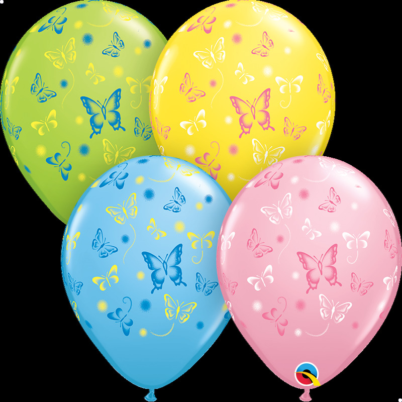 Μπαλόνια Λατέξ 11″ Batterflies /50 τεμΓαλάζιο – Κίτρινο – Ροζ – Λαχανί