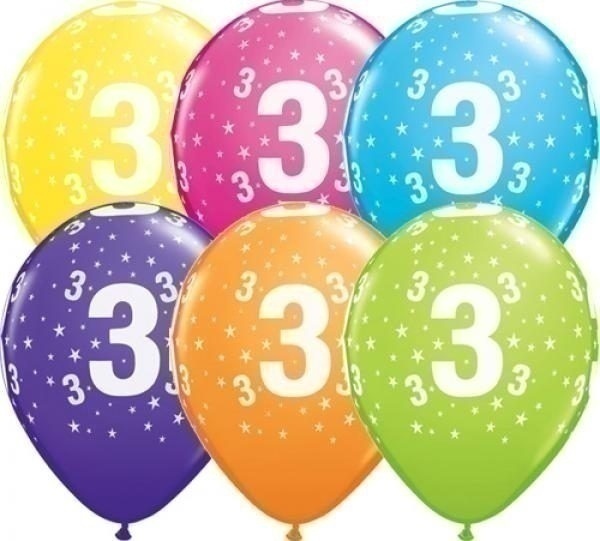 Μπαλόνια Λάτεξ 11″ Νούμερο -3- Stars Tropical Assortment /25 τεμ