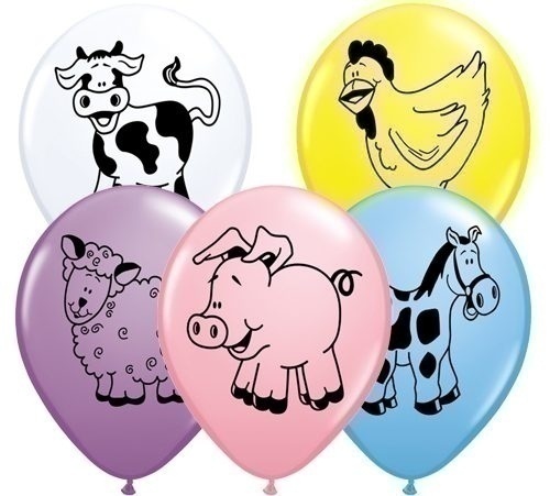 Μπαλόνια Λάτεξ 11 ” Ζωάκια Φάρμας Ασσορτι Κίτρινο,Ρόζ,Σιέλ,Λευκό, Λιλά /25 τεμ