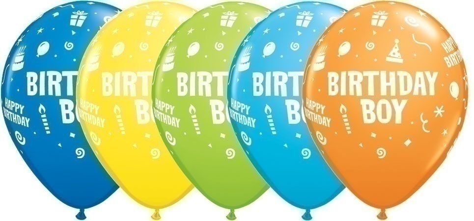 Μπαλόνια Λάτεξ 11″ Birthday Boy Ast Blue-Yellow-Robins-Lime-Orange /25 τεμ