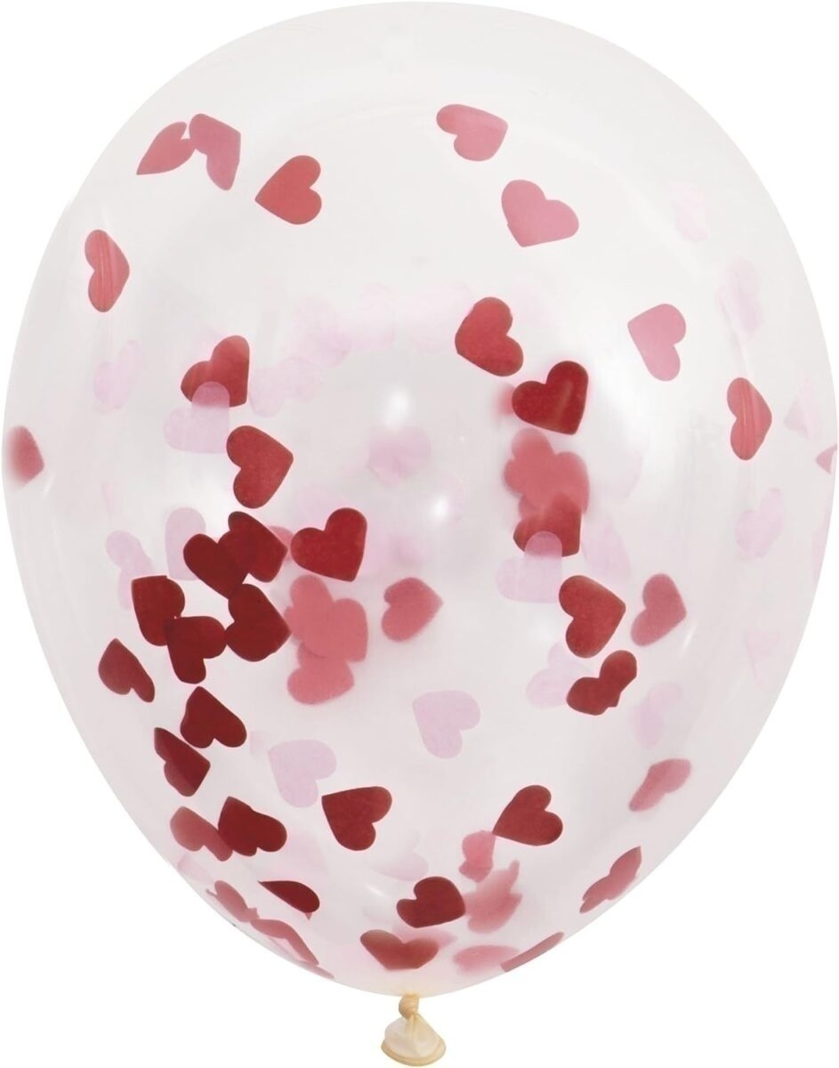 Μπαλόνια Λατέξ 16 Διάφανα με Κομφετί Καρδιές / 5 τεμ
