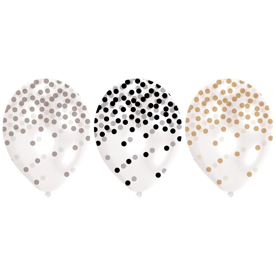 Μπαλόνια Λάτεξ 9″ Κομφετί Golden Wishes / 6 τεμ