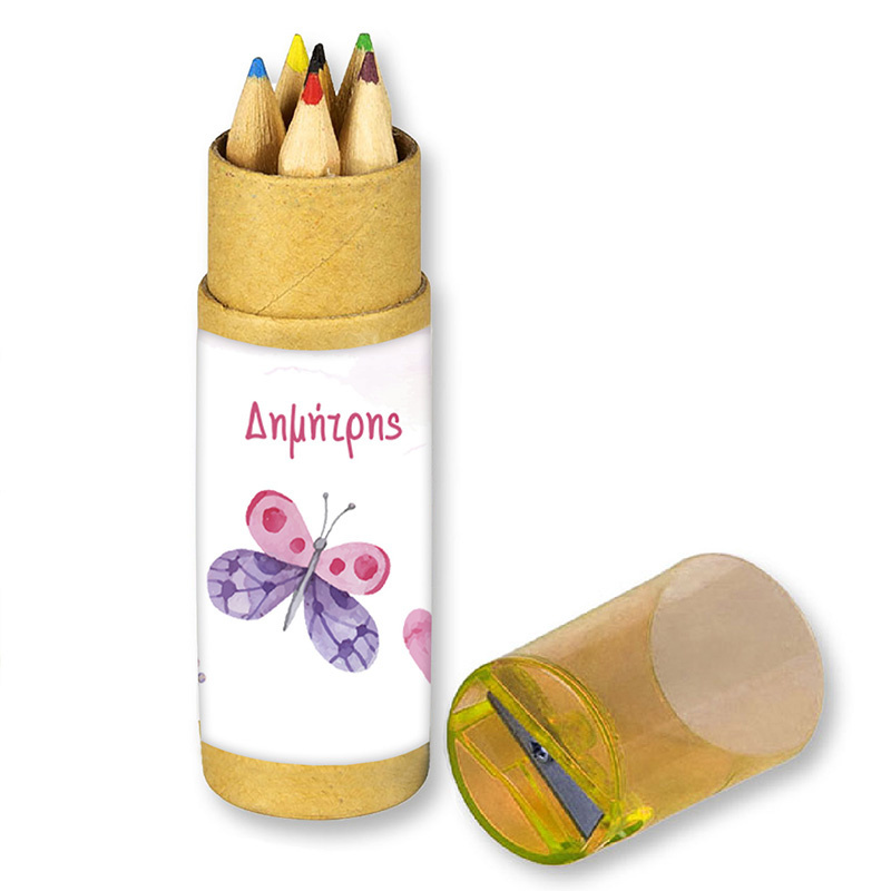 Σετ Ξυλομπογιές 6τμχ με ξύστρα Butterfly με όνομα ένα υπέροχο δωράκι για τους μικρούς μας φίλους. Για την Βάπτιση και το Πάρτι σας.