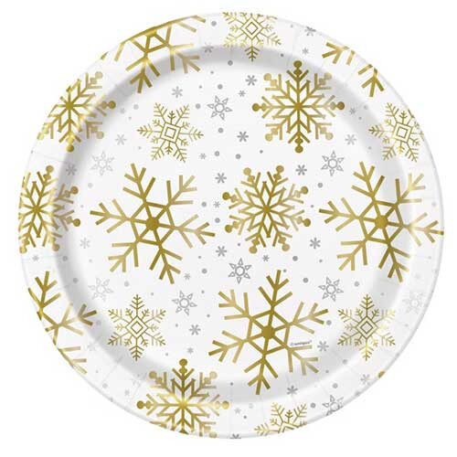 Χάρτινα Πιάτα 8 τεμ με χρυσές χιονονιφάδες.