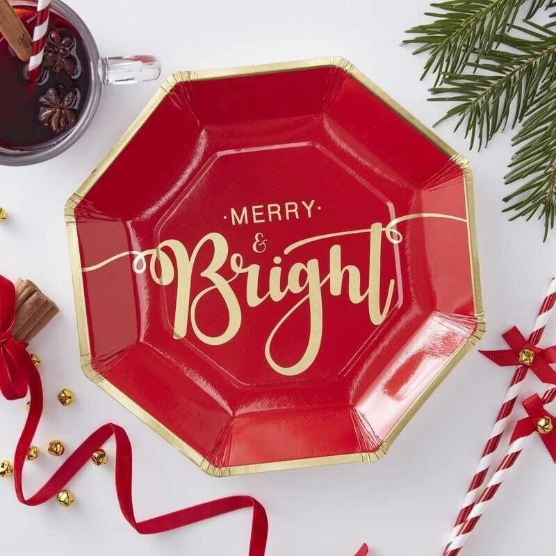 Χάρτινα Πιάτα Κόκκινο & Χρυσό / 8 τεμMerry & BrightChristmasΧριστούγγενα