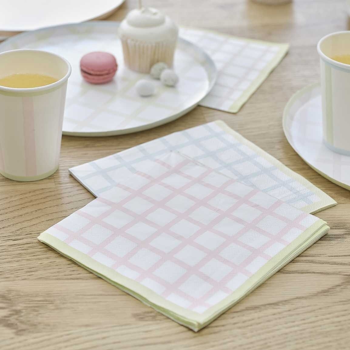 Διακοσμήστε με αυτές τις χαριτωμένες χαρτοπετσέτες με τα παστέλ καρώ τυπώματα , συνδυάστε τις με τα ασορτί πιάτα και θα δώσετε υπέροχο χρώμα στο τραπέζι σας.